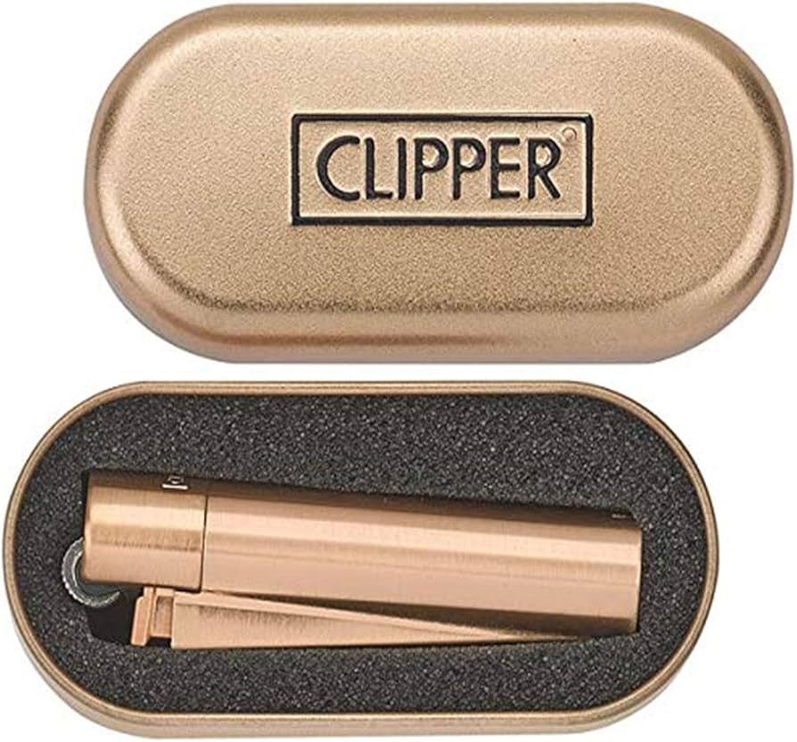Rose Gold Clipper Metal Refillable Gas Lighter with Flint Metallic Finish Gift Tin Case Box Limited Edition