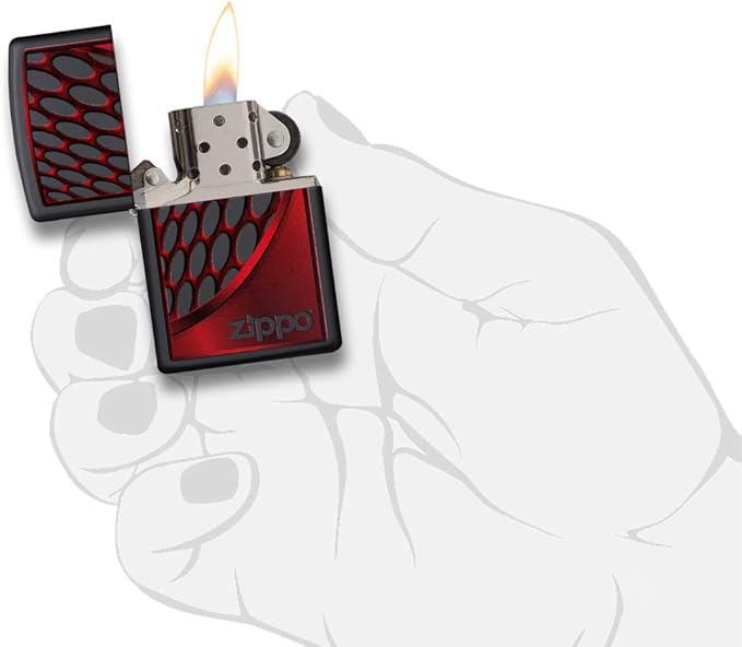 Zippo, Founded in 1932 by George G. Blaisdell, has produced more than 600 million lighters in over 90 years. In addition to the distinctive lighters, the range also includes accessories, hand warmers, leather goods, glasses and outdoor products. With a worldwide presence in over 180 countries, the Bradford’s W.R. Case and Sons Cutlery Company and Northern Lights Candles from Wellsville, NY, to Zippo. Why a Zippo Windproof Lighter? It impresses with its windproof flame, distinctive Zippo “click”, lifetime refillability, a gift box and the proven Zippo guarantee – “It works or we repair it for free”. Made in the USA, our products stand for the highest quality standards, which is reflected in the durability and reliability of each lighter. This model reinvents itself with a bright red, abstract design that is particularly well accentuated by the black matte finish.